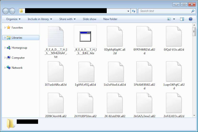 Il meccanismo di criptazione invece non ha subito grosse modifiche: le novità sono che il ransomware modifica i nomi dei file con caratteri random e aggiunge una estensione random di 4 caratteri, uguale per tutti i file criptati.